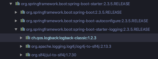 Spring Boot를 이용하면 로그 데이터를 남길 수 있도록 아래와 같이 logback과 logback의 퍼사드인 slf4j가 자동으로 추가됩니다.