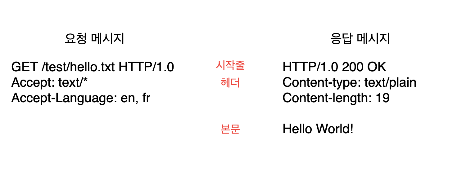 - 시작줄 : 요청이라면 무엇을 해야 하는지, 응답이라면 무슨 일이 일어났는지 나타낸다.