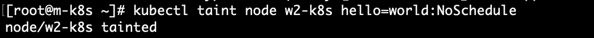 - 위 결과를 확인해 보면 톨러레이션을 통해 w2-k8s 노드에 nginx 파드가 스케줄링된 것을 확인할 수 있다.