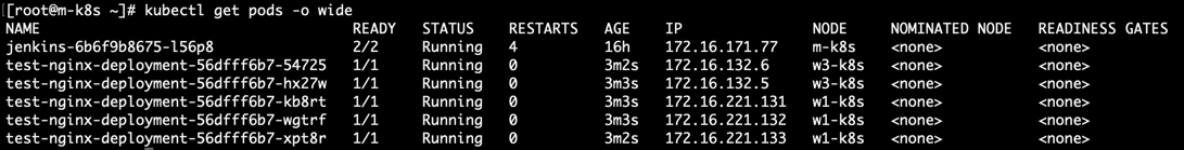 - w2-k8s를 제외한 w1-k8s, w3-k8s 노드에만 nginx 파드들이 배치된 것을 확인할 수 있다.