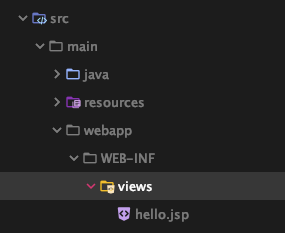 생성된 경로대로 jsp 파일을 인식하는지 확인해보기 위해 간단하게 hello 페이지를 만들어보겠습니다.