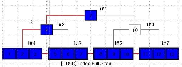 https://12bme.tistory.com/138 인덱스 풀 스캔은 Leaf 노드의 제일 앞 또는 뒤로 이동한 후에 Leaf 노드를 연결하고 있는 연결 리스트를 이용하여 처음부터 끝까지 스캔하는 방식입니다. 이 방식은 인덱스 레인지 스캔보다는 빠르지 않지만 테이블 풀 스캔보다는 효율적입니다. 인덱스에 포함된 컬럼만으로 쿼리를 처리할 수 있는 경우 테이블 레코드를 읽을 필요가 없기 때문입니다.