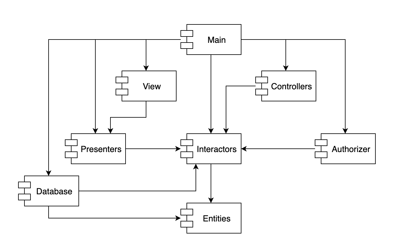 시스템 전체를 릴리스해야 할 때가 오면 릴리스 절차는 상향식으로 진행하게 됩니다. 먼저 Entities 컴포넌트를 컴파일하고, 테스트하고 릴리스 합니다. 그러고 나서 Database와 Interactors에 대해서도 동일한 과정을 거칩니다. 그다음에는 Presenters, View, Controllers, Authorizer 순으로 진행합니다. Main은 마지막에 처리하게 됩니다.