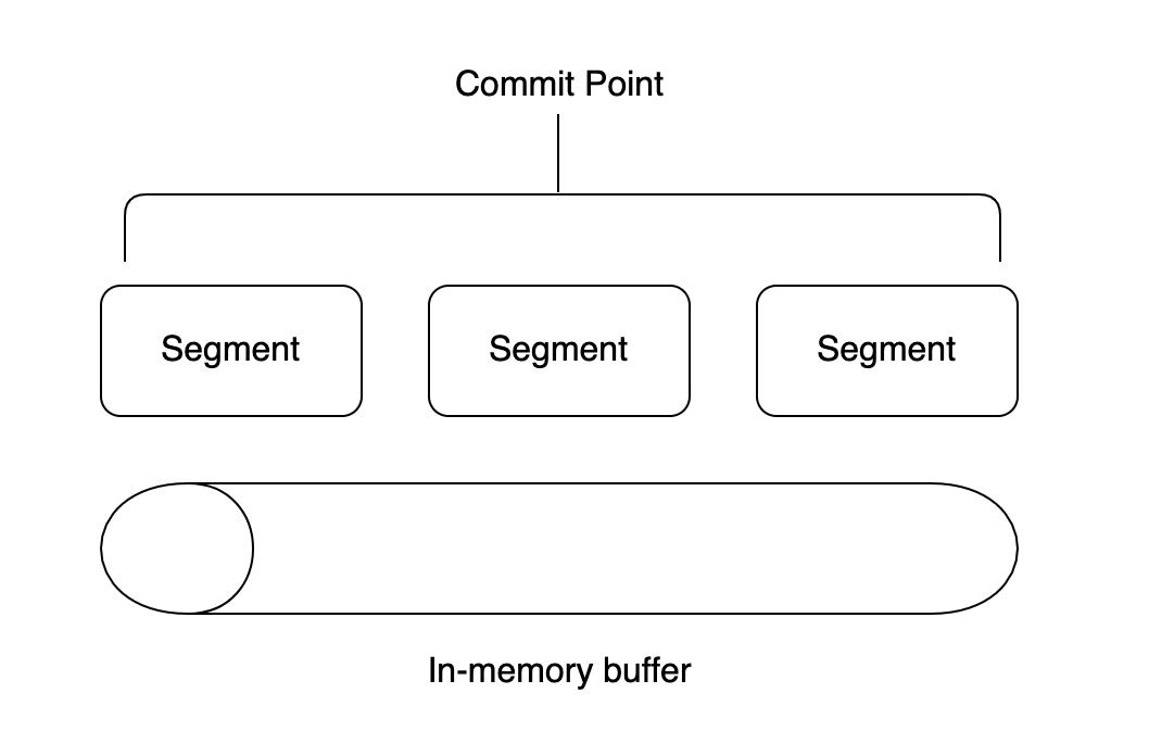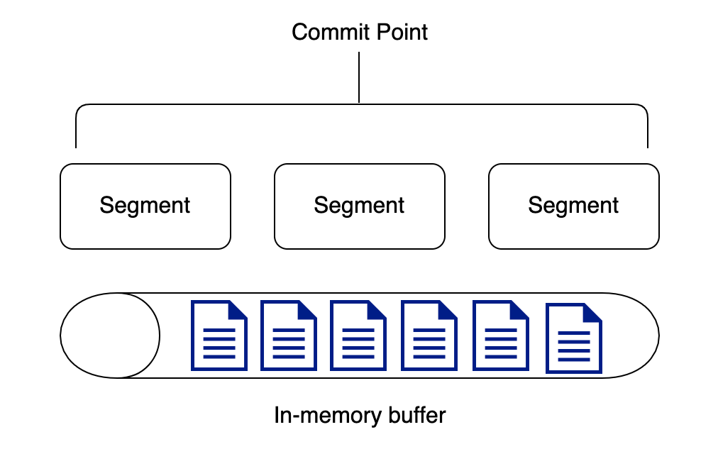루씬에 색인 작업이 요청되면 전달된 데이터는 인메모리 버퍼에 순서대로 쌓이고, 정책에 따라 내부 버퍼에 일정 크기 이상의 데이터가 쌓이거나 일정 시간이 흐를 경우 버퍼에 쌓은 데이터를 한꺼번에 모아 처리합니다. 버퍼를 일종의 큐(Queue)로 활용하는 것입니다.